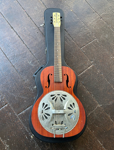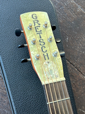 With its mahogany "long-body" design and comfortable "soft V"-shaped neck, this faithful reissue of the 1930s classic sounds and plays like a million bucks. The vital feature of all Gretsch resonator guitars is the Gretsch Ampli-Sonic™ diaphragm (resonator cone), which is hand-spun in Eastern Europe from nearly 99 percent pure aluminum, yielding an impressive quality and volume of tone.