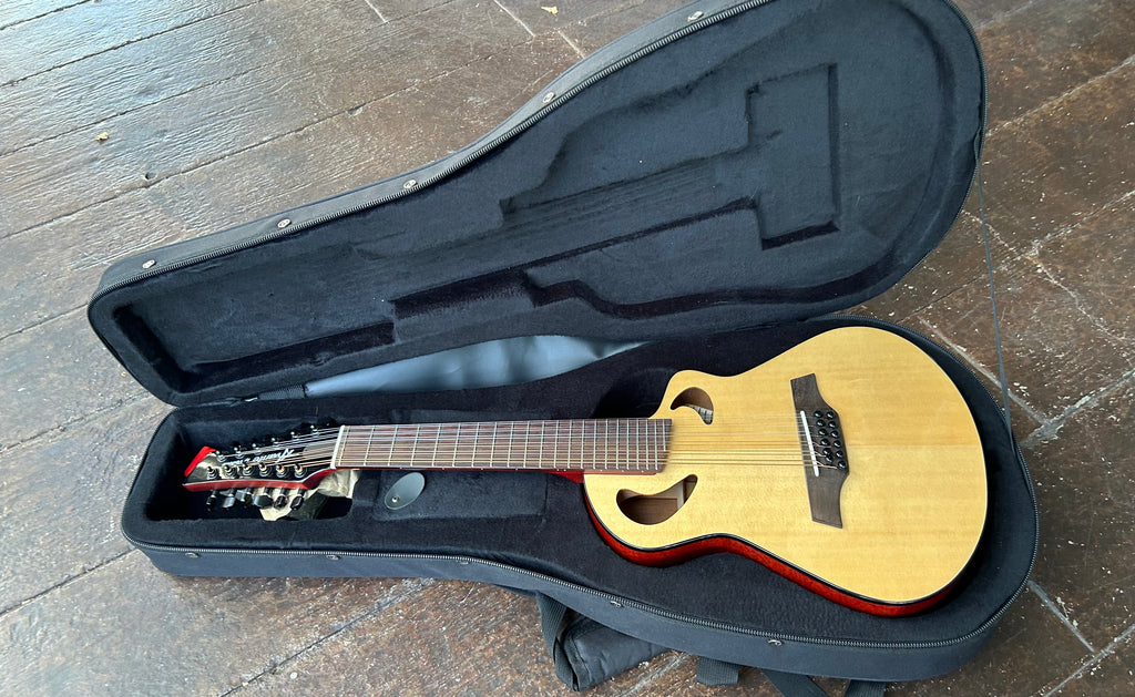 With celestial, sparkling highs and punchy mid-register, the Avante Gryphon® 12-string shines in a wide range of applications. The strings are tuned as 6 unison pairs, tuned up to D (10 frets higher than standard). Guitarists can immediately play mandolin-style parts in a new high register without learning a new tuning. A capo on the second fret puts it a full octave above standard tuning. As a songwriting tool, for doubling or layering in studio, and even as a compact traveling companion, the Avante Gryphon is guaranteed to inspire.