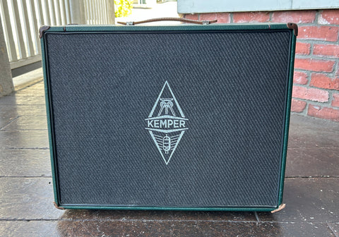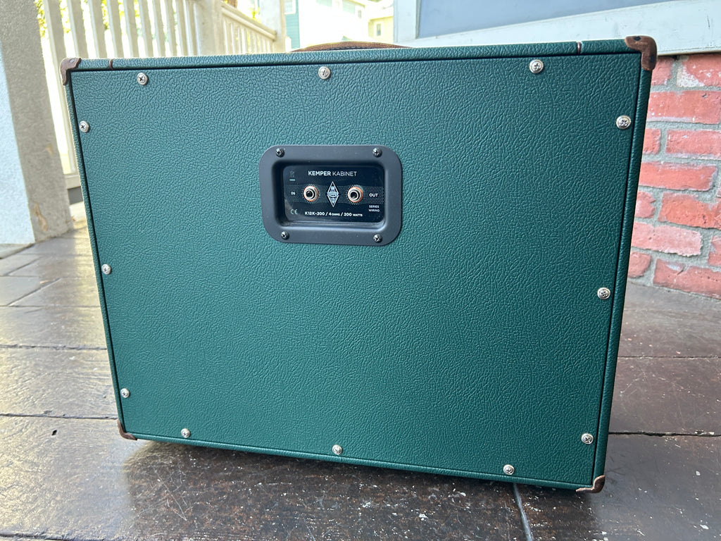 The Kemper Kabinet 1x12 passive guitar cab faithfully captures the familiar "amp in a room" response of 19 sought-after speaker types firing out of an all-wood cabinet. From modern Vs to vintage Js, players now have more ways than ever to customize the monitored sound of their Profiler's virtual Stacks and Stomps. The secret is a Celestion-designed Kemper Kone full-range speaker driven by the Profiler's own baked-in DSP (OS 7+). Because of its extremely linear design, the Kabinet excels at re-creating the frequency and transient responses of any number of player-preferred speakers — enough to cover a dizzying array of musical styles. In the mood to move some air? A high 200-watt handling means the Kone's tone remains pure even as you push your power amp. And thanks to its light carry weight and stage-friendly 1 x 12" design, the Kabinet is primed to be the only monitoring solution you need for practice and performance. It all comes decked out in a Kemper Green covering with handsome leather handles and corner protectors.