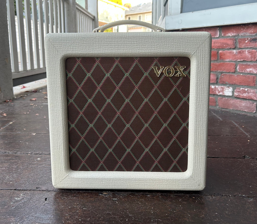 Offering a unique take on the classic VOX AC4, the AC4TV is a remarkably flexible little tube amp that features a retro inspired aesthetic and three different output modes (4 watts, 1 watt, or ¼ watt), allowing you to achieve true VOX tone at volume levels suitable for any environment. This up-to-date Class A version retains the distinctive EL84 power tube of the original and features a 12AX7 powered pre-amp, all driving a custom-made Celestion 10” speaker. The sophisticated sound is unmistakably VOX, delivering that distinctively British top-end tone.