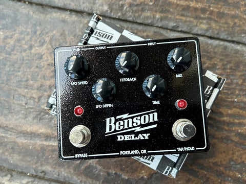 With a 30ms-1250ms range, the Benson delay goes fast enough to do chorus, vibrato and slapback, and slow enough to create blurred and haunted soundscapes, with a whole spectrum of warbly musical sounds in between.
