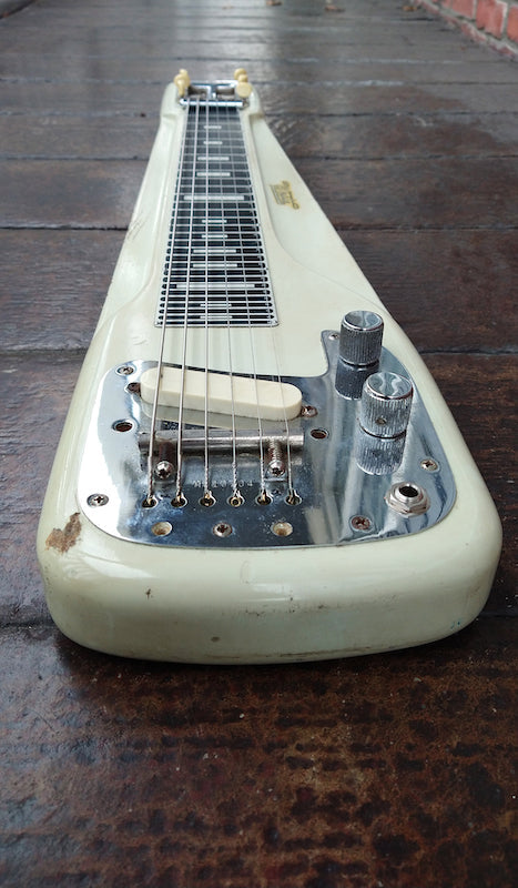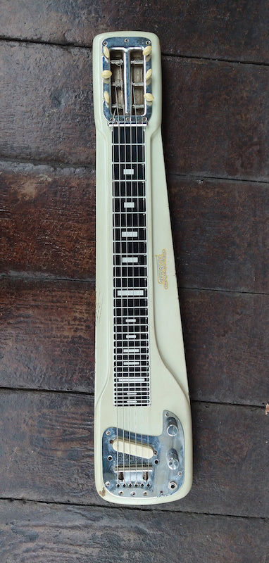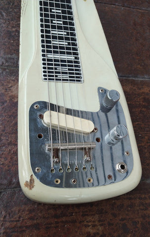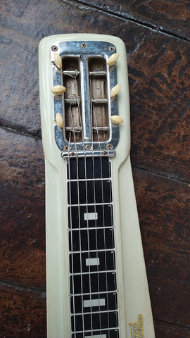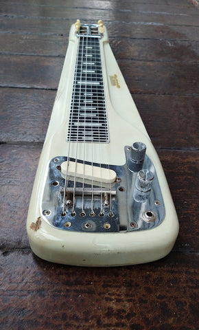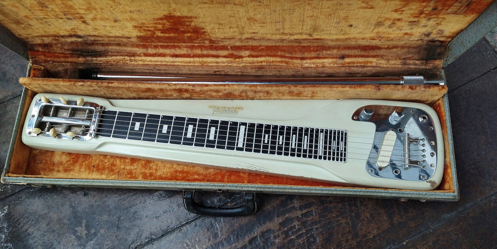 The "White" label was a short lived brand created by Leo Fender to honor Forest White, the production manager who had been instrumental in fender's growth. The brand was used as a way to sell Fender gear (ie. this lap steel which is a clone of the Champ and the White Higher Fidelity amp which was a copy of the Princeton 5f2a) to non Fender accounts without upsetting the current accounts - it was short lived and very few were made.?? These are very rare.
