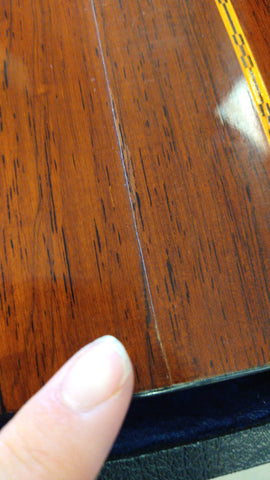 Some back cracks (glued & cleated), some wear by soundhole, and finish, neck headstock, grover tuners, new bone compensated saddle (see photos)