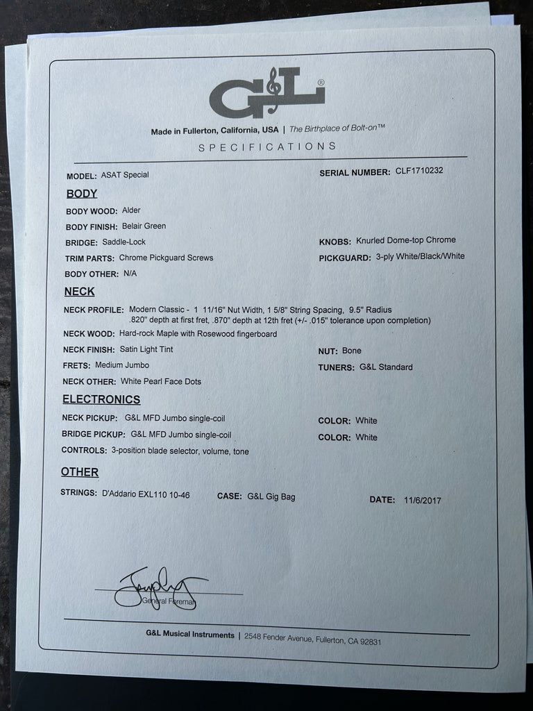 2017 G&L ASAT Special