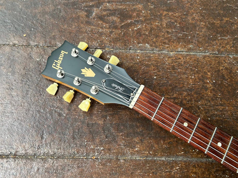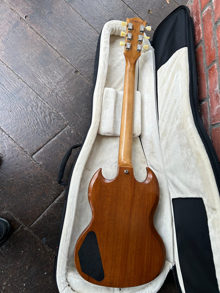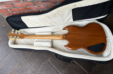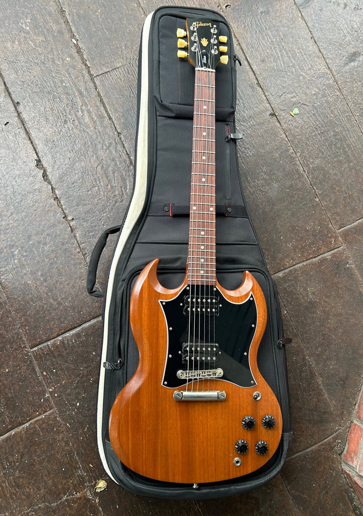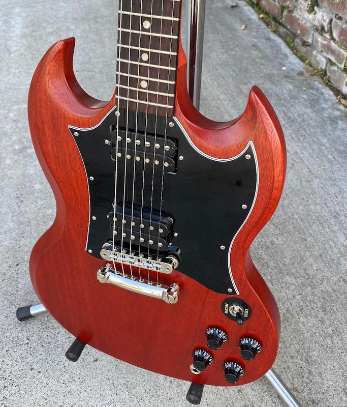 Available in Vintage Cherry Satin, and Natural Walnut Satin, the SG Standard Tribute boasts a traditional mahogany body and rounded profile maple neck with rosewood fingerboard. It is finished with a black, 5-ply full-face pickguard loaded with double black, open-coil 490R and 490T Alnico II loaded pickups. Nickel plated hardware includes Vintage Deluxe tuners w/ Keystone buttons, a Nashville Tune-O-Matic bridge and Aluminum Stop Bar Tailpiece.