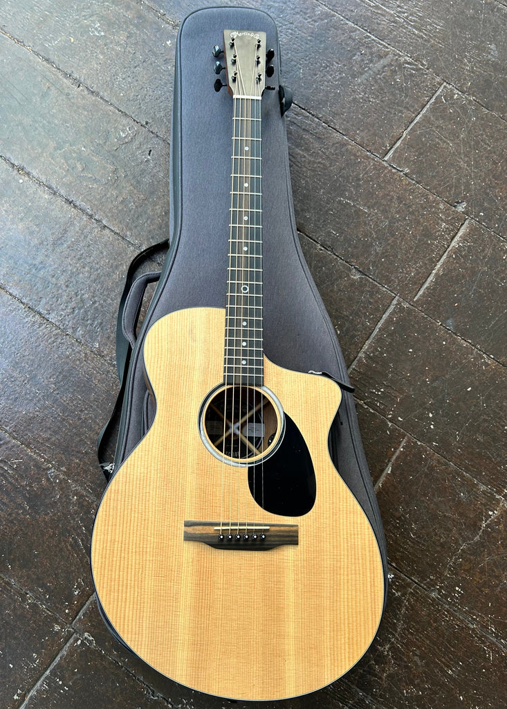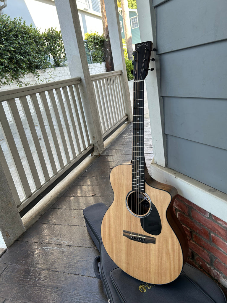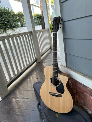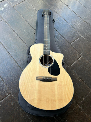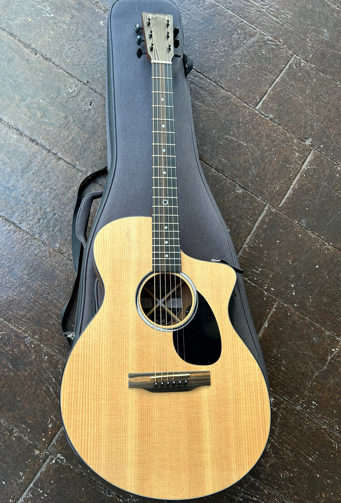 All-solid-wood construction, the Martin SC-10E Spruce blends 21st-century acoustic innovation with a decidedly traditional tonewood formula. This Road series acoustic-electric guitar boasts Martin????s supremely ergonomic SC-shaped body, complete with a heel-less neck joint and a Low Profile Velocity neck profile for effortless access to the 16-inch-radius Richlite fingerboard????s entire range. As for the tone, this guitar????s solid spruce top and Tone Tension X-bracing sing with a clear, crisp character and superb sensitivity. Next, the solid sapele back and sides offer a warm and enveloping aura, all adding up to an impeccably modernized variation of Martin????s timeless Style 18 sonic signature. What????s more, the SC-10E Spruce????s Martin E1 electronics system captures every nuance of the guitar????s complex unplugged tone, and it also comes equipped with tone-shaping controls and an onboard tuner. Finished off with Martin????s forward-thinking bolt-on Sure Align neck system, top-shelf closed-gear tuning machines, and classic Martin aesthetic accouterments, the Martin SC-10E Spruce pays tribute to the Nazareth tradition while pushing the boundaries of steel-string design.