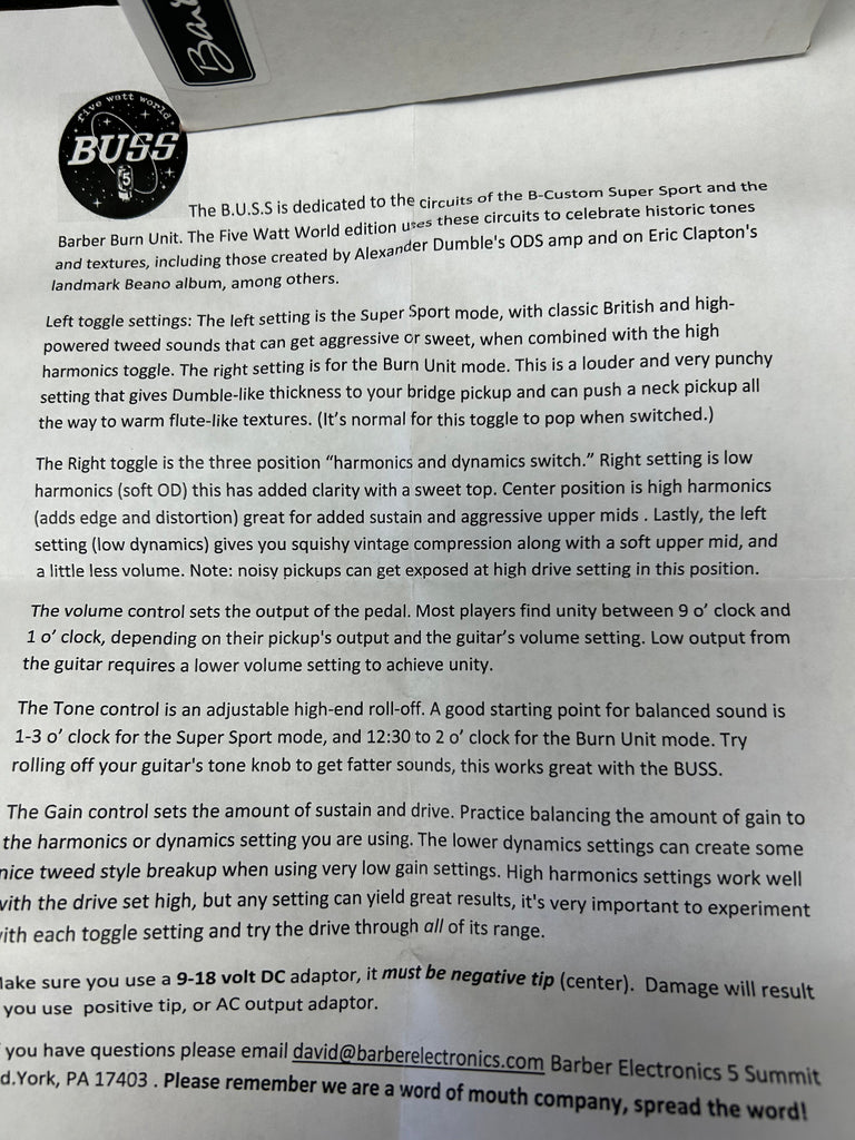 The B.U.S.S is derived from the circuits of the Burn Unit and the Direct Drive Super