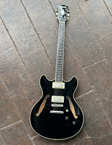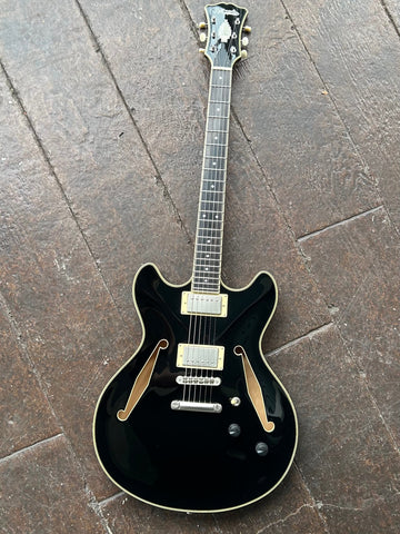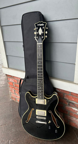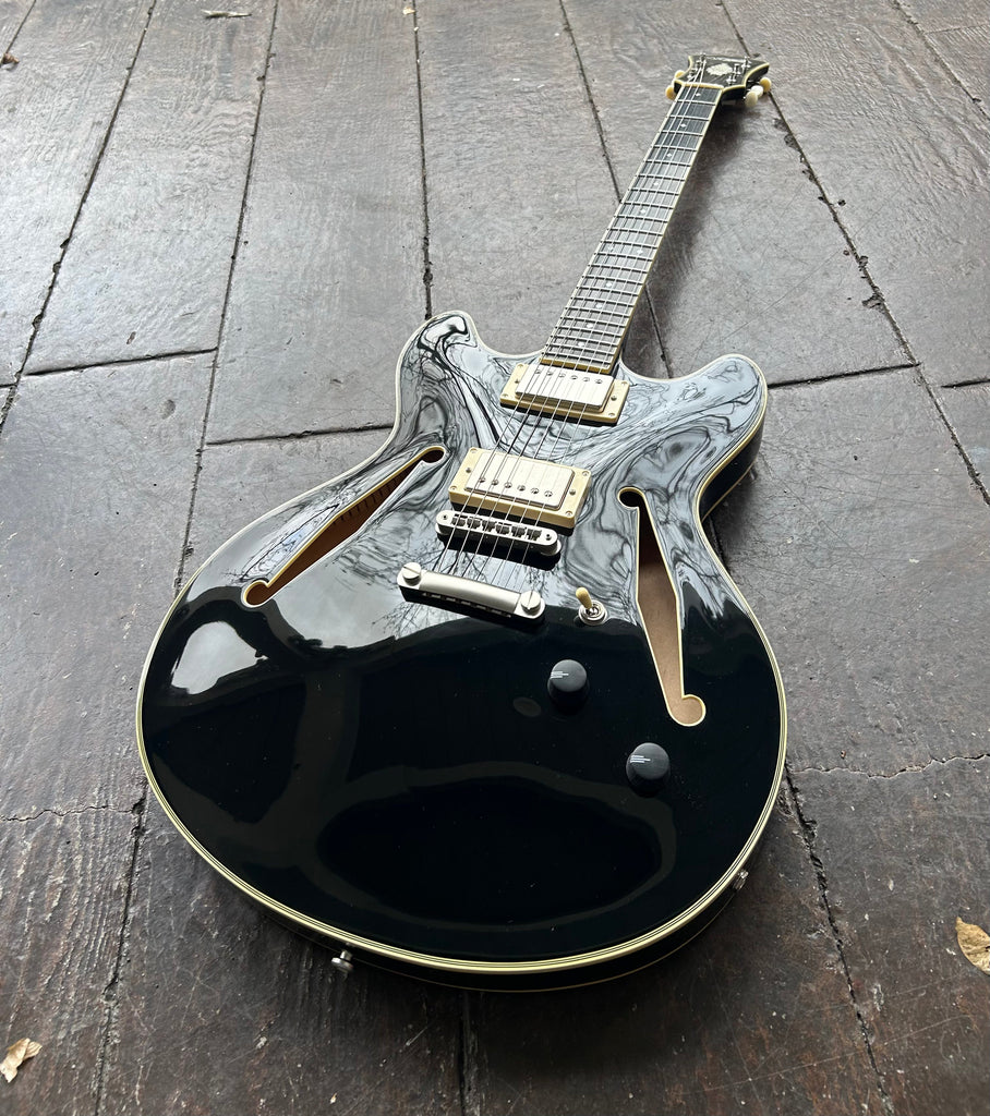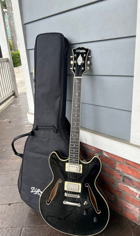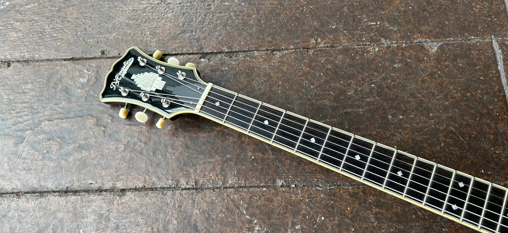 A 16-inch-wide semi-hollow with deep cutaways and a lightweight centerblock, the DC offers remarkable sustain and exceptional genre versatility. No pickguard and 1930s-inspired diamond f-holes bring old-school charm.