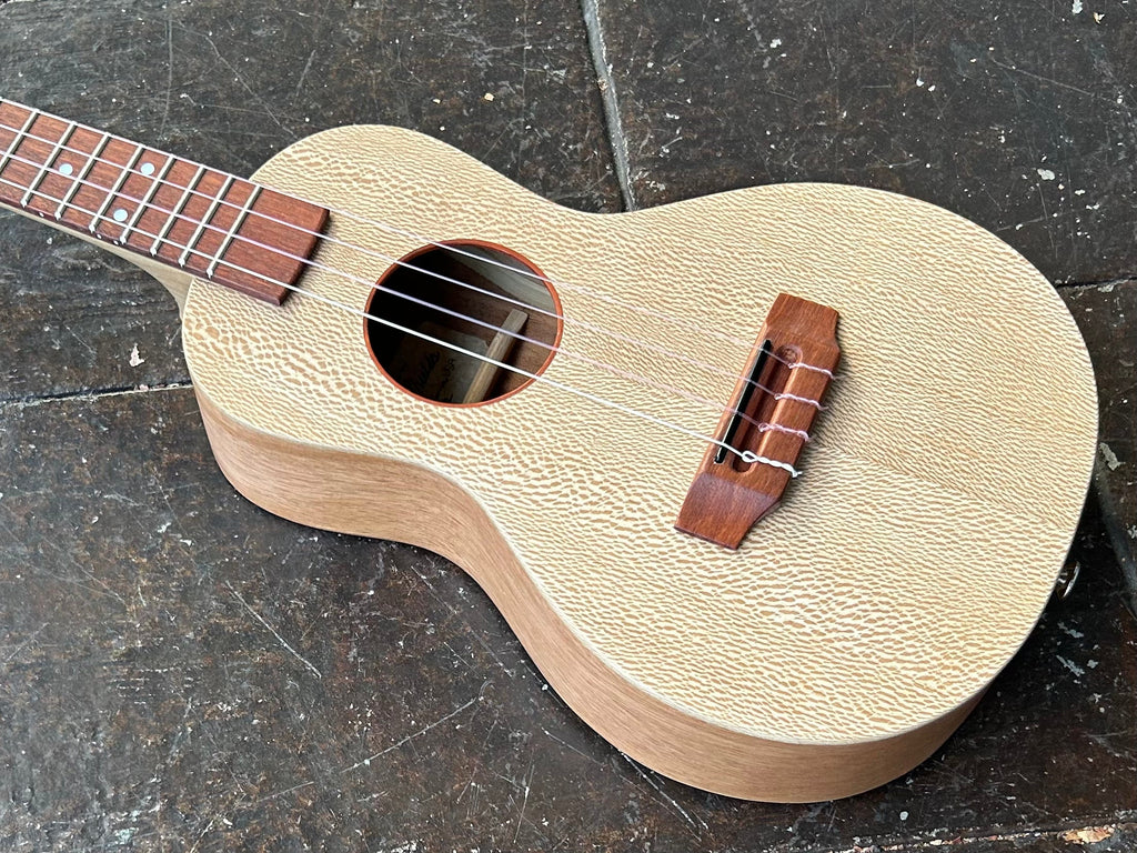 tag 18992 Fred Shields Tenor Ukulele Sycamore Top Mahogany back and sides
