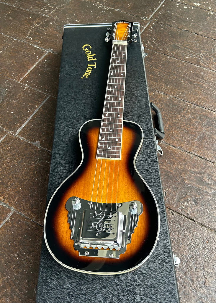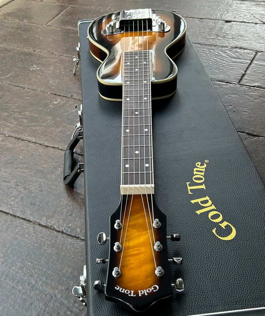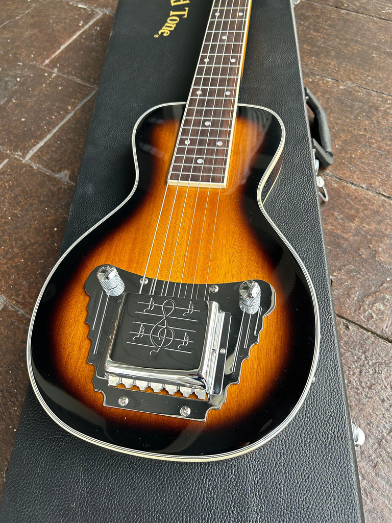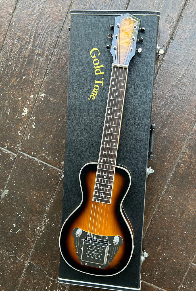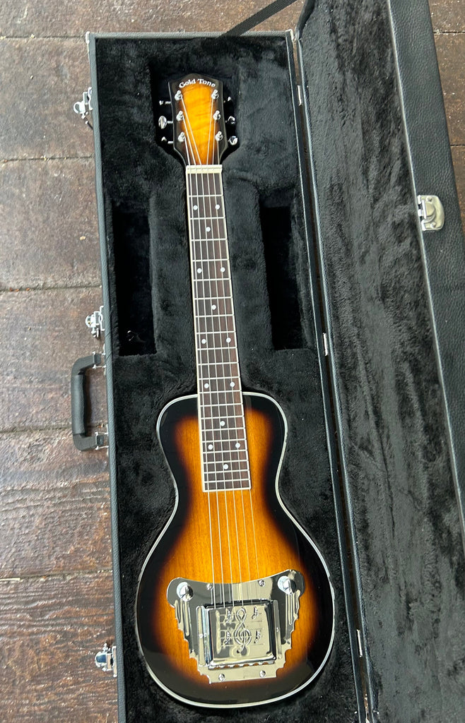 The Gold Tone LS-6 evokes the Oahu Tonemaster, one of the most revered lap steels of the 1950s. Our version is so close to the original that owners of Oahu instruments buy LS-6 pickups and hardware from us for use in the restoration of their prized guitars. The LS-6 is set up for open D tuning (DADF#AD) but other tunings can be accommodated by installing strings that are gauged for those tunings.