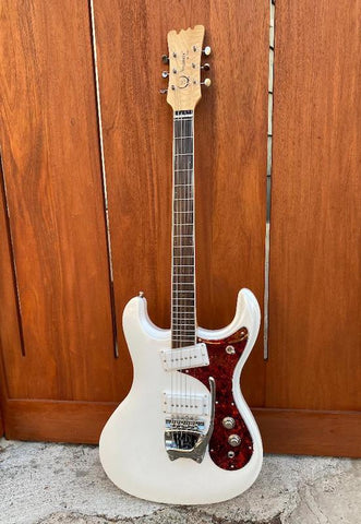 These pickups have the same tone as the vintage models but without the squeel and hum. Many top pros agree the sound is absolutely unique. We have employed the same improvements in this model as we have in all of our models keeping the key ingredients such as a re-designed locking bridge by Shade which creates more sustain, and provides correct intonation and string alignment.