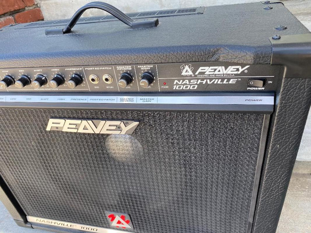 The Peavey Nashville 1000 Amplifier for steel guitars has 300W RMS power with switch-mode power supply