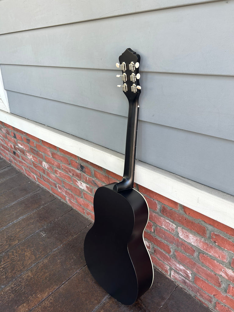 This instrument????s top is framed with vintage-style checkerboard binding, a bound soundhole and Harmonella stencil fretboard markers.