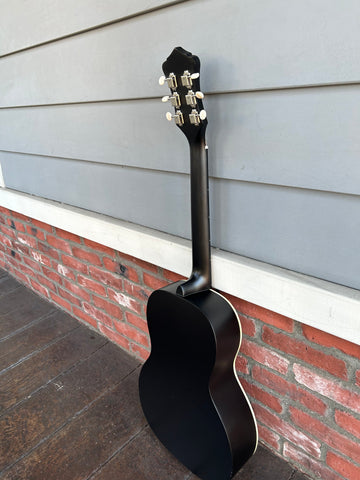 The spruce top provides the foundation for classic acoustic tone beneath the Tobacco Sunburst finish. The bound soundhole and Harmonella stencil fretboard markers are both functional and stylistic.