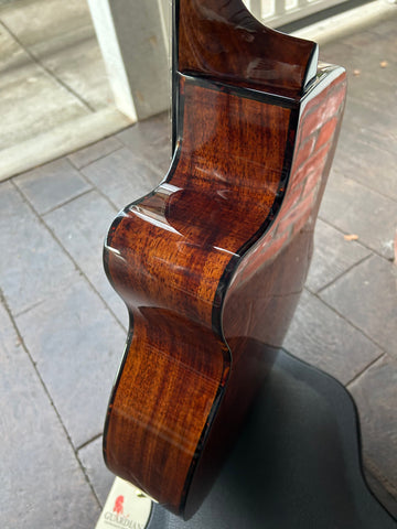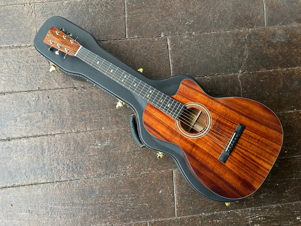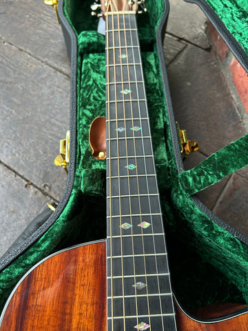 Crafted from all-solid Koa wood, this guitar delivers a rich, resonant tone that will captivate players and audiences alike. Koa is a harder wood than spruce, with fundamental tones that are very focused, without lots of overtones, perfect for melodic fingerpicking.