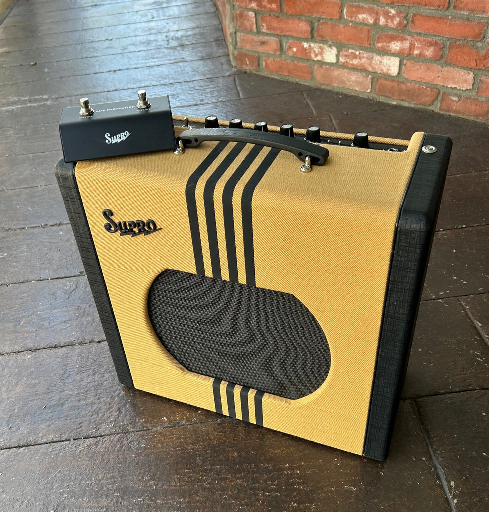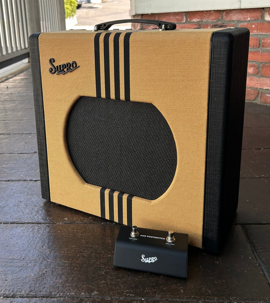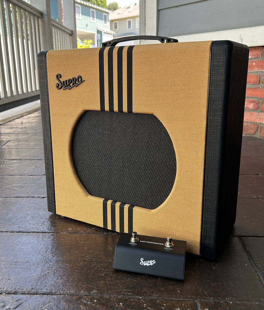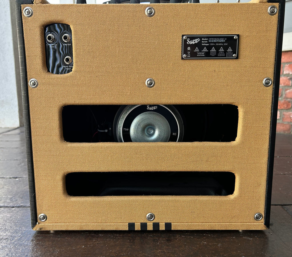 The Delta King 12 combo captures the vintage Supro amp tone that helped sculpt the sound of early electric Rock & Roll and the British Invasion of the 1960s. Its single-ended Class A tube power amp provides the same raw tonal characteristics and remarkable touch sensitivity features of its mid-century counterparts, all while delivering a full 15 watts of 6L6 tube power through our custom 12-inch DK12 speaker. Features include front-end gain via a 12AX7 tube preamp, a FET-driven boost function, Pigtronix FAT high-gain mode, 3-band EQ, master volume, and custom-made genuine analog spring reverb.