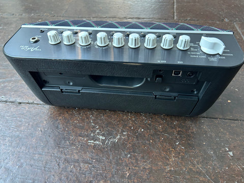 The ADIO Air Bass is a portable stereo bass amplifier with Bluetooth capabilities. Play along to your favorite tracks with the Bluetooth or Aux inputs, and go anywhere thanks to the battery power. Record your playing over USB thanks to the audio interface function. The Adio Air Bass has a variety of amp models and effects, played in stereo with 50W of power through two full-range 3" speakers.