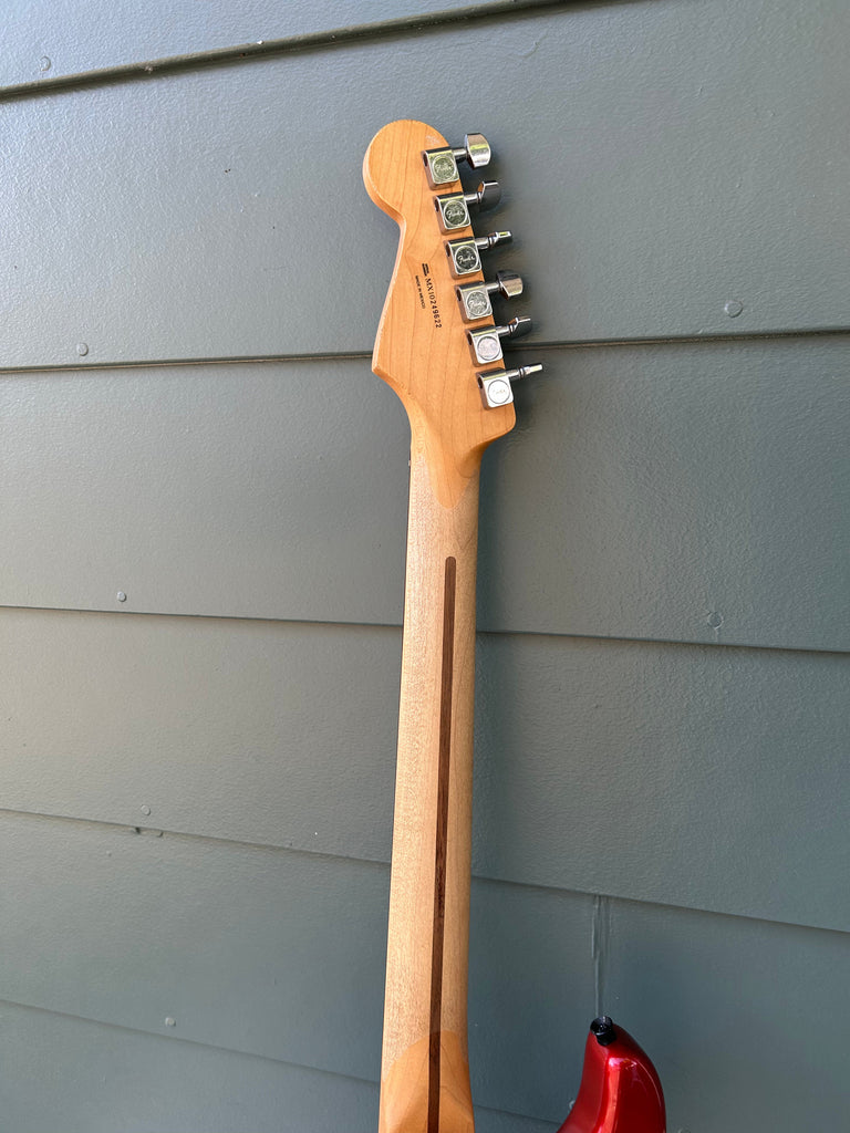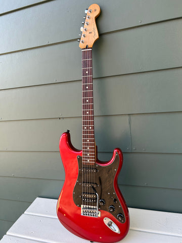 The Road Worn Stratocaster HSS guitar features an alder body with a lightly worn lacquer finish, modern "C"-shaped maple neck with lightly worn urethane finish, rosewood fretboard with 9.5" radius and medium jumbo frets, Texas Special??? neck and middle pickups, Seymour Duncan?? Pearly Gates humbucking bridge pickup, five-way switching, black plastic knobs and switch tip, three-ply pickguard, vintage-style synchronized tremolo bridge