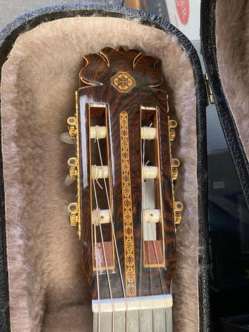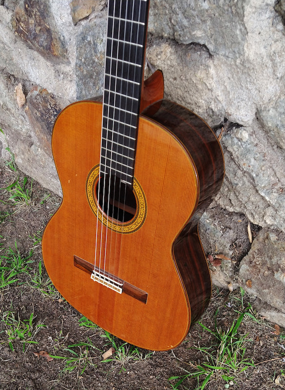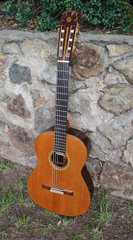Solid Cedar Top, Solid Indian Rosewood back and sides. Round soundhole with rosette, mulit-ply body binding, cedro neck with Spanish foot construction.??Natural finish.??