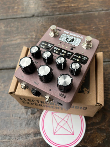 The hardware combines primitive DSP with analog saturation and filtering for a sonic character untethered from a particular era. A fully digital user interface enables all parameters to be controlled via MIDI, saved as presets, and even modulated by the onboard LFO. In addition, the Morphing function enables controllable transitions between two distinct settings via the Aux footswitch or an expression/CV source.