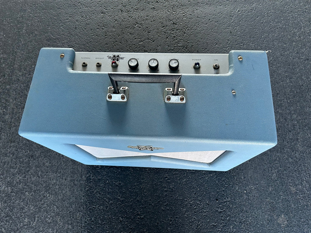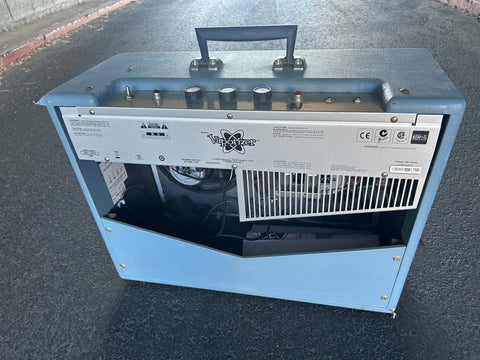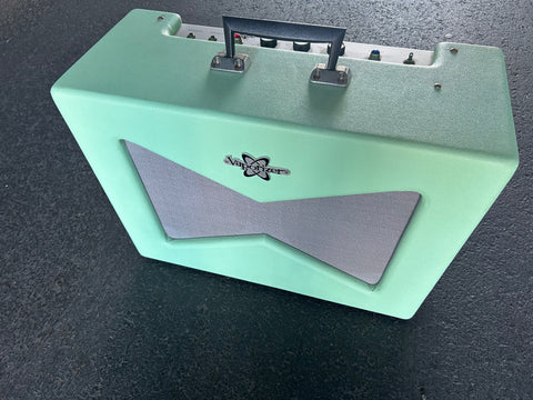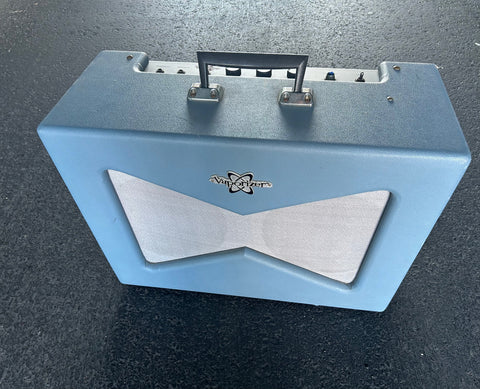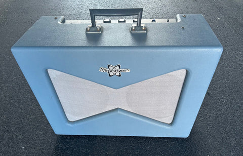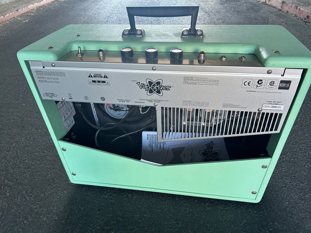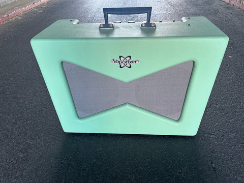 Bring a cool retro vibe to your rig with the Fender Vaporizer all-tube combo amplifier. Sporting a pair of 10" Special Design Vaporizer speakers, this amp delivers 12 watts of pure guitar tone. The atomic-age design and cosmetics give the Vaporizer a vibe unlike any other. A cool Vaporizer mode bypasses the volume and tone controls for complete, unrestricted access to the core of the amplifier. Add to that a deep reverb and a cool luggage-style handle, and the Fender Vaporizer combo guitar amp is sure to make an impression.
