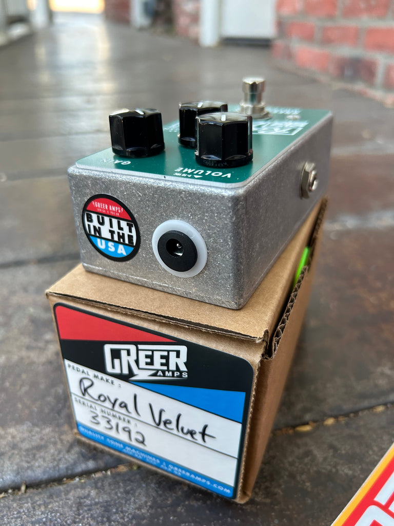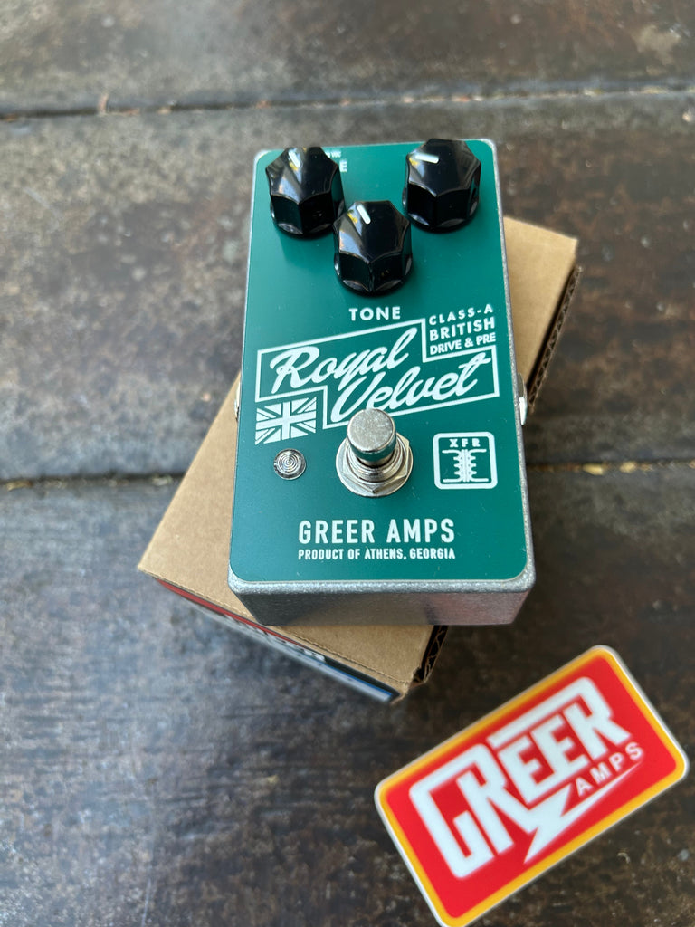 Greer Amps expands the XFR line with a new offering! The Royal Velvet Class-A British Drive and Pre nails the feel and tone of two of Nick Greer’s favorite amps. Imagine a world in which a V*x 30 watter and a Greer Thunderbolt30 got together. In that world, you’d end up with a sound machine much like the Royal Velvet. This British drive and pre features the same transformer as the previously released, award winning SOMA63. After a year of working with this super versatile transformer, we have found a way to alter the feel of it by changing the “loading” of the transformer. This really brings the pedal to life, and makes it something truly unique in the space of drive pedals today. If you’re looking for that Class-A British grind with some chime on the top end, this beauty is what you need. The EQ is dialed in right between the AC and Thunderbolt30 tones, and the drive is oh so sweet. At 9 volts, you’ll get some grind and slight compression with the gain up and moderate output pickups. 18 volts provides more of a stiff feel, and more clean headroom with that British sparkle!