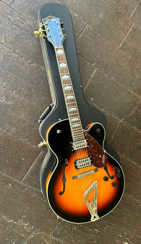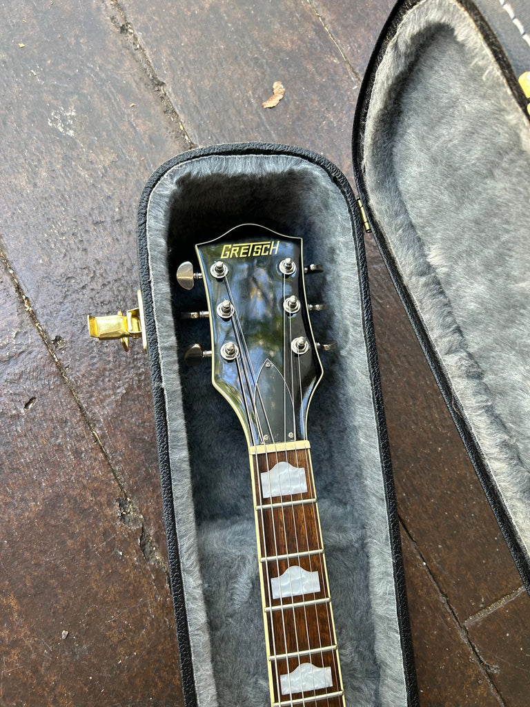 All the classic eye-catching style you????ve come to expect from Gretsch is here????vintage-style black control knobs, enlarged F-holes for increased acoustic projection, elegant aged white binding with upgraded purfling, slick-looking nickel hardware, arched laminated maple construction and three-ply tortoise pickguard. Nearly impossible to put down once you pick it up and start playing, the G2420 is an astounding take on the authentic sound and classic style you????ve come to expect from Gretsch.