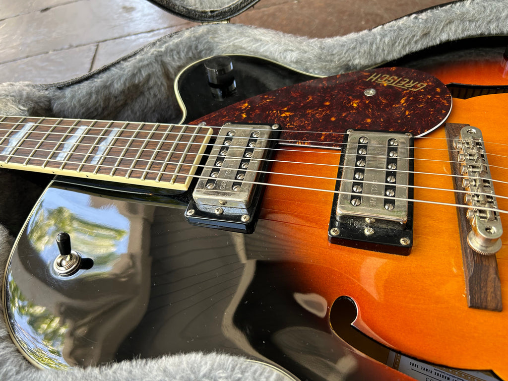 The secret to the Streamliner????s sound is a new offering from Gretsch????the Broad????Tron??? BT-2S humbucking pickup. Designed specifically for the Streamliner Collection, the high-output Broad????Tron pickup spawns improved definition with tighter bass response for robust lows, pristine highs and a throaty midrange. This sonic power is harnessed and shaped by the traditional control layout????neck and bridge pickup volume controls, a master tone control, master volume control and three-way pickup switching. A fast-playing 12????-radius laurel fingerboard with elegant pearloid Hump Block inlays and 22 medium jumbo frets sits atop the white-bound nato neck with a thin ????U????-shaped profile????ideal for chord work or firing off speedy riffs. Enjoy rock-solid tuning stability courtesy of the stylish Gretsch Chromatic II tailpiece, Adjusto-Matic??? bridge with secured laurel base and synthetic bone nut.