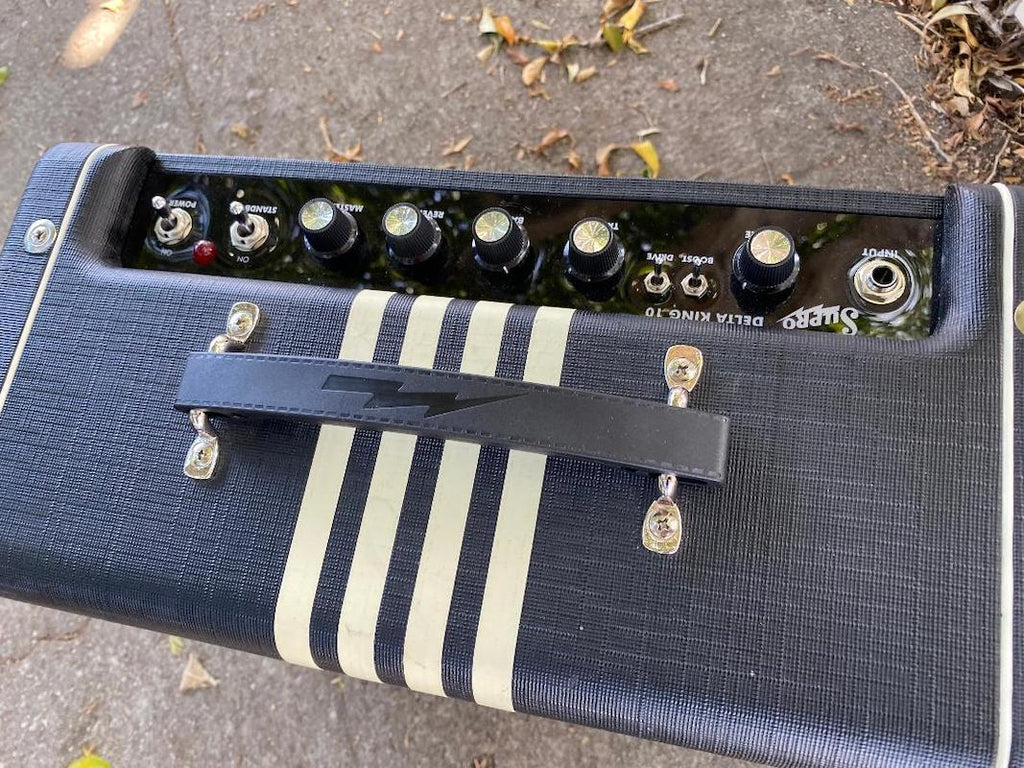 The Delta King 10 delivers the authentic 6V6-powered tube-amp tone of the Chicago-made Supro combos from the 1950s. Its Class A power amp provides all of the natural compression and touch-sensitive headroom that have made these vintage ????single-ended???? combos a bedrock of recorded rock history. Offering 5 watts of power through our custom 10-inch DK10 speaker, the Delta King 10 strikes between at-home recording amp and onstage rig. Features include front-end gain via a 12AX7 tube preamp, a FET-driven boost function, Pigtronix FAT high-gain mode, 2-band EQ, master volume, and custom-made genuine analog spring reverb.