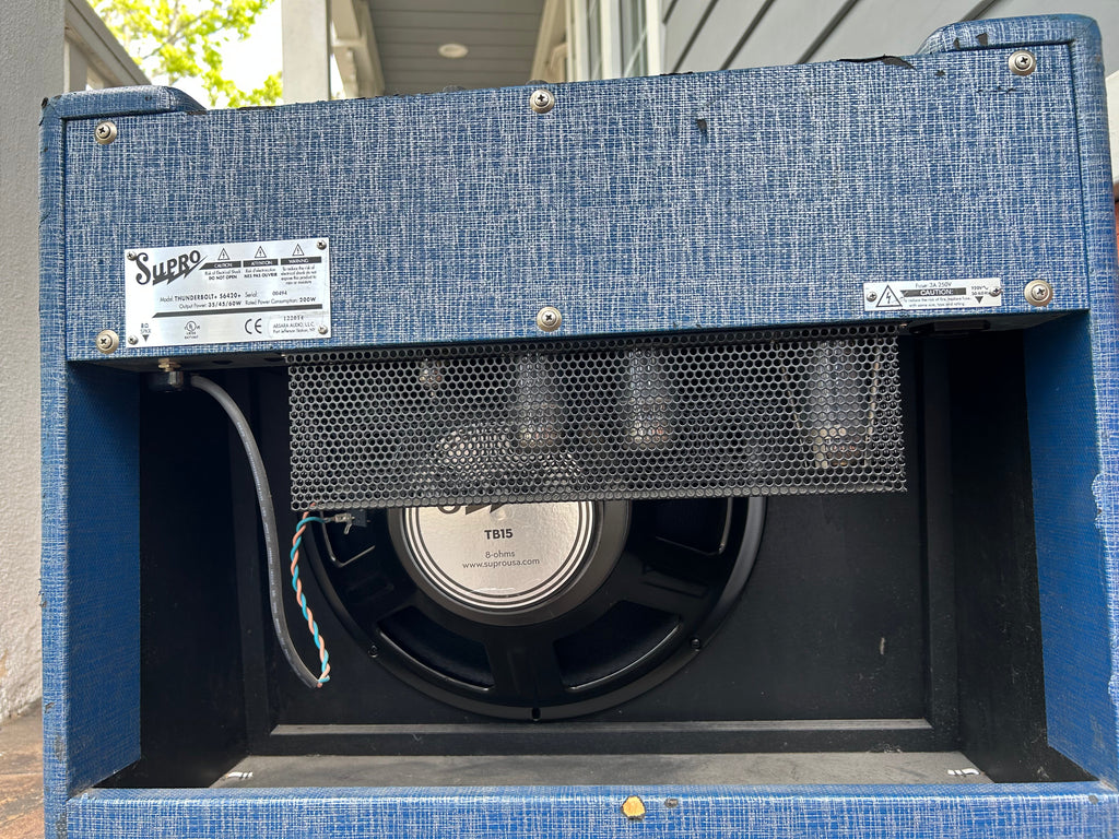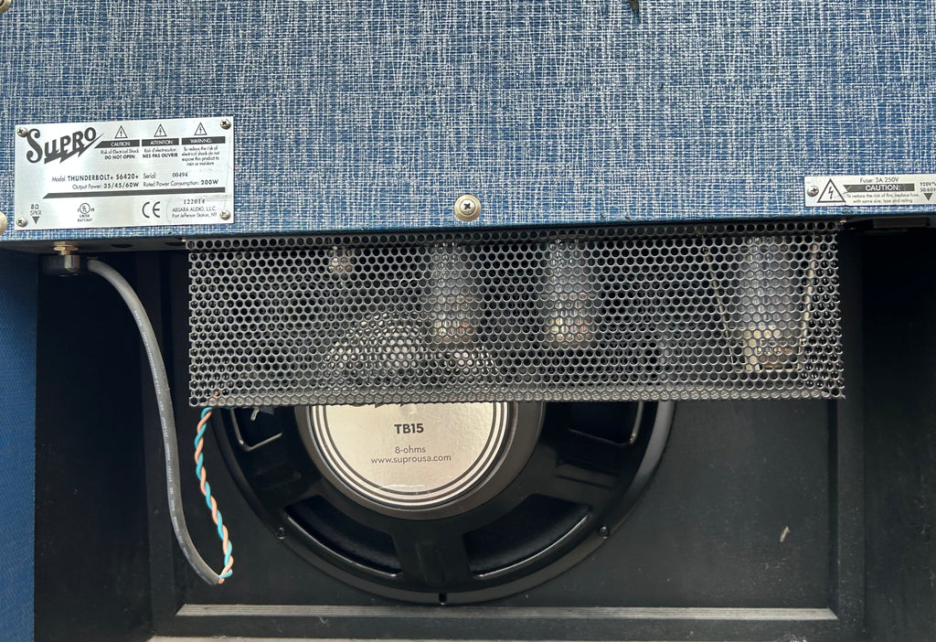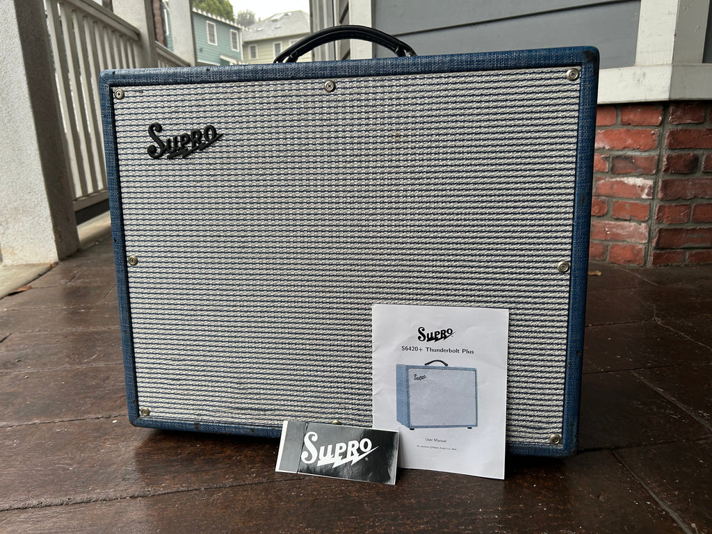 The Supro Thunderbolt Plus amplifier adds switchable power amp topology to the legendary 1964 Supro Thunderbolt, giving you the original 35-Watt ????Class A???? Cathode bias sound as well as beefy 45-Watt and 60-Watt Grid bias modes for additional headroom and tonal variation. This unique design is implemented via a three-way selector switch on the front panel.