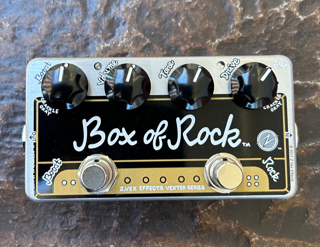 The Box of Rock™ simulates Zachary’s favorite amp turned up all the way, a 1966 Marshall® JTM45. The tone control adjusts brightness and there’s a high-headroom low-noise boost.